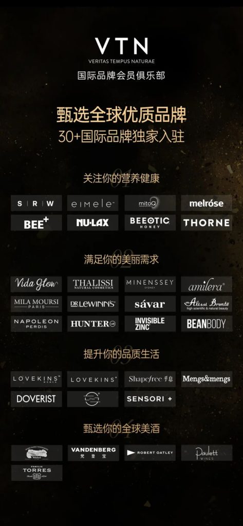 - VTN是ACCESS集团自营的高端会员制国际品牌俱乐部,与天猫、京东等合作渠道共同构成ACCESS集团触达消费者的通道。